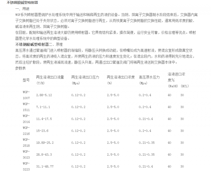 WGP-1007,WGP-1511,WGP-2014,WGP-2216,WGP-2518,WGP-3023,WGP-3223,不銹鋼酸堿型噴射器