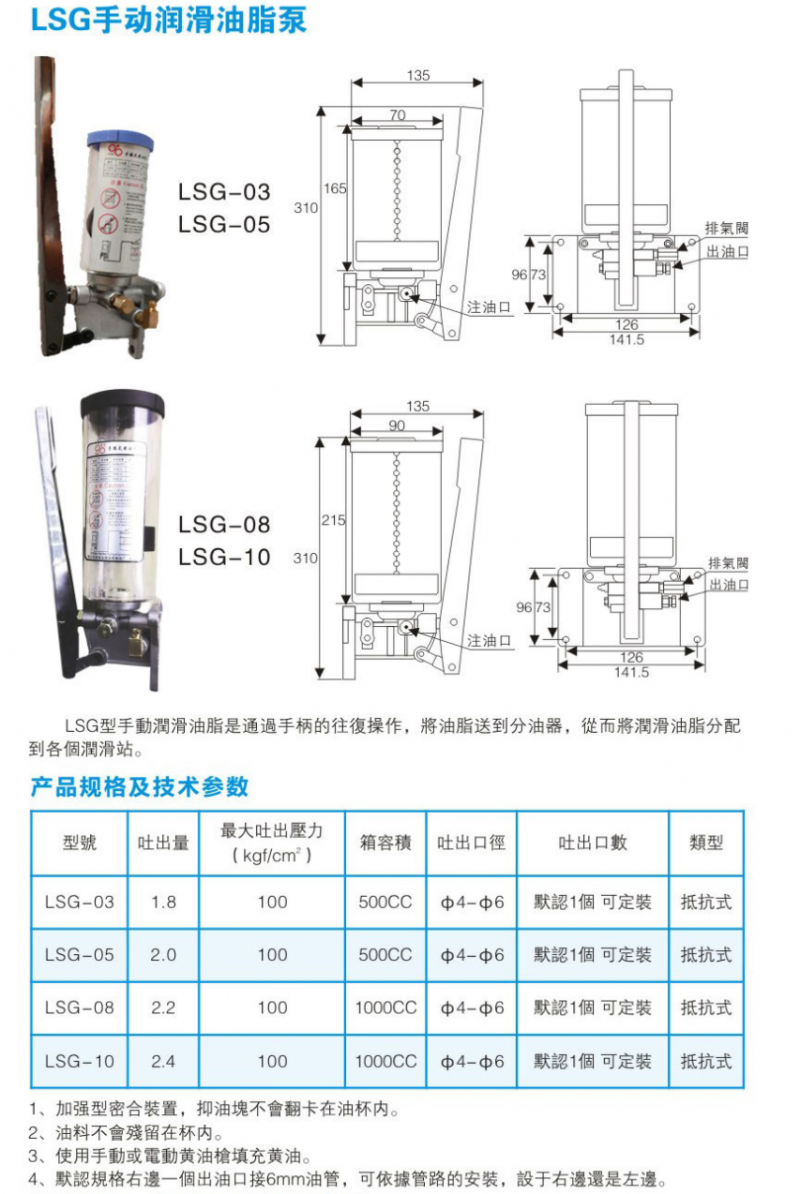 手動(dòng)潤滑油脂泵LSG-03-0.5L,LSG-05-0.5L,LSG-08-1L,LSG-10-1L