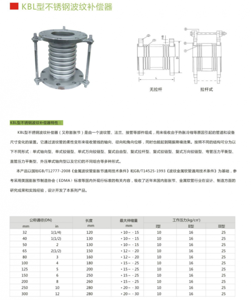 不銹鋼波紋補償器 KBL-32,KBL-40,KBL-50,KBL-65,KBL-80,KBL-100,KBL-125,KBL-150,KBL-200,KBL-250,KBL-300