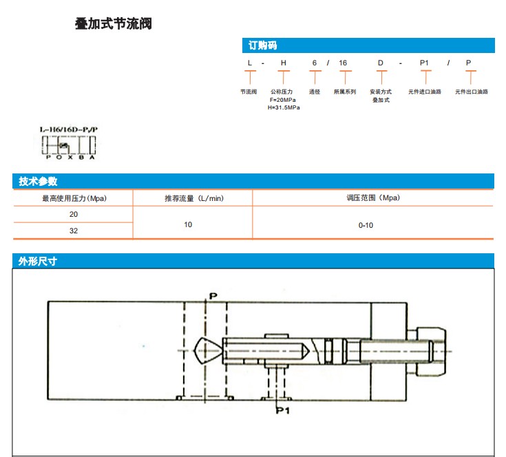 L-H6/16D-P1/P,L-F6/16D-P1/P,疊加式節(jié)流閥