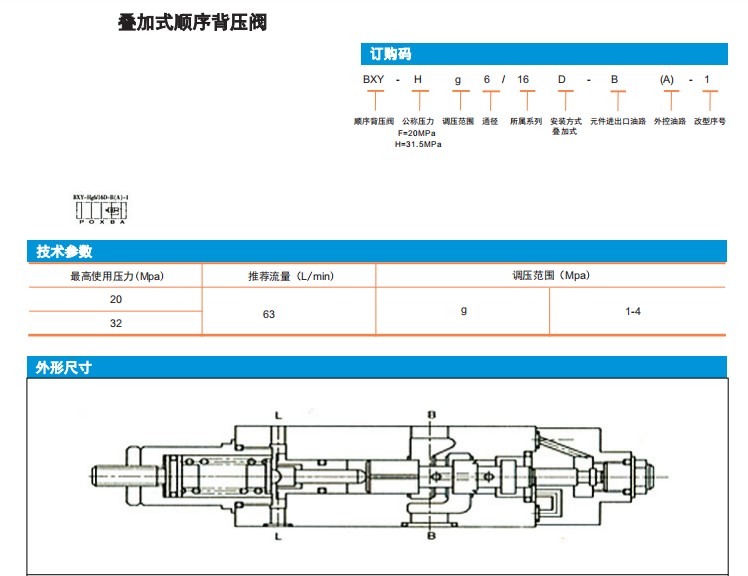 BXY-Hg6/16D-B(A)-1,BXY-Fg6/16D-B(A)-1,疊加式順序背壓閥