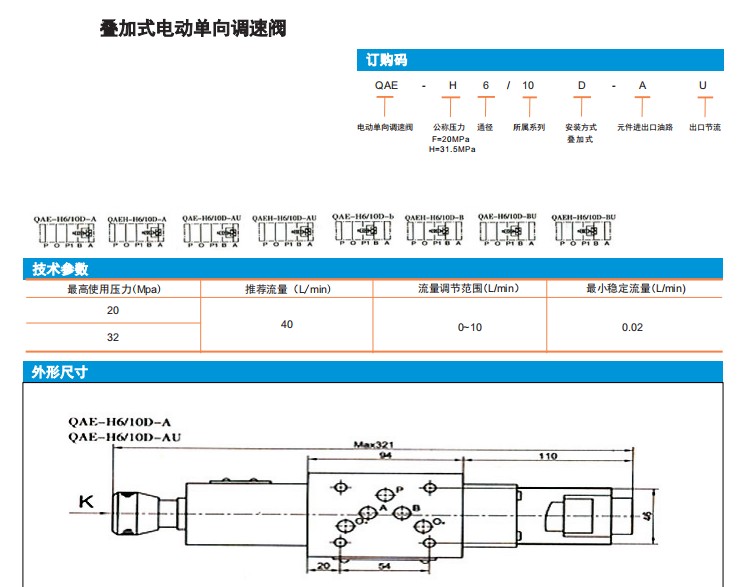 QAE-H6/10D-A,QAEH-H6/10D-A,QAE-H6/10D-BU,疊加式電動(dòng)單向調(diào)速閥