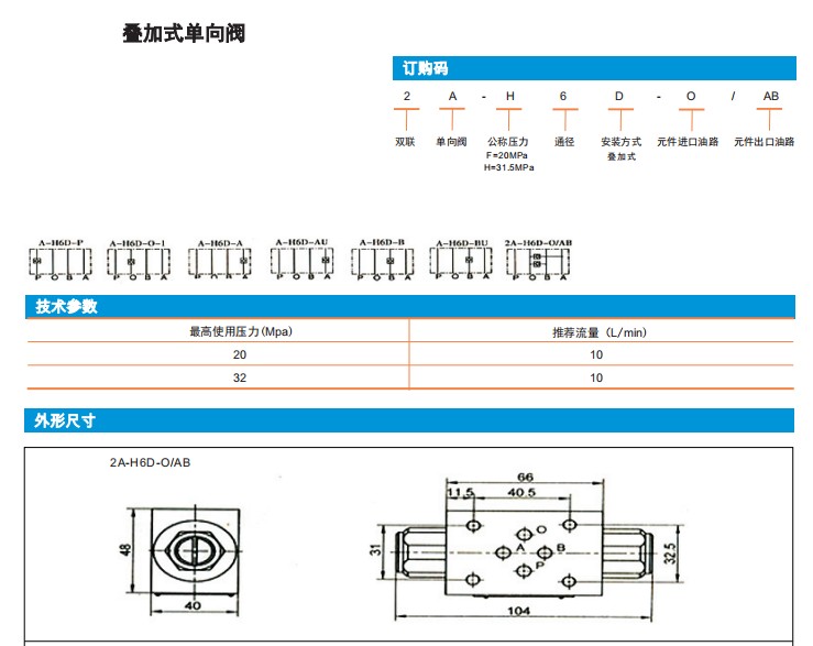 A-H6D-P,A-H6D-O-1,A-H6D-A,A-H6D-AU,A-H6D-B,A-H6D-BU,2A-H6D-O/AB,疊加式單向閥