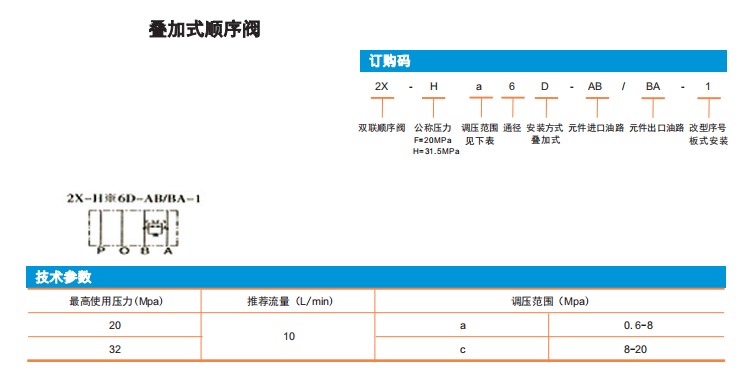 2X-Ha6D-AB/BA-1,2X-Hc6D-AB/BA-1,2X-Fa6D-AB/BA-1,2X-Fc6D-AB/BA-1,疊加式順序閥