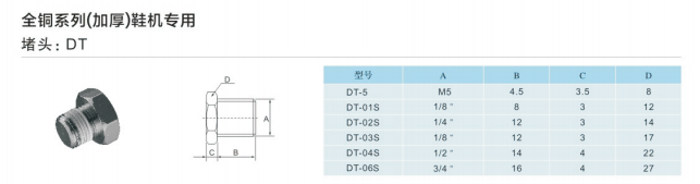 SMC型全銅系列(加厚)鞋機(jī)專用DT-M5,DT-1/8,DT-1/4,DT-3/8,DT-1/2,DT-3/4,DT-1寸,