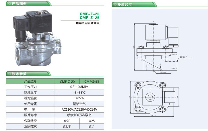 直角式脈沖閥CMF-Z-20,CMF-Z-25,CMF-Z-40S,CMF-Z-50S,CMF-Z-62S,CMF-Z-76S,