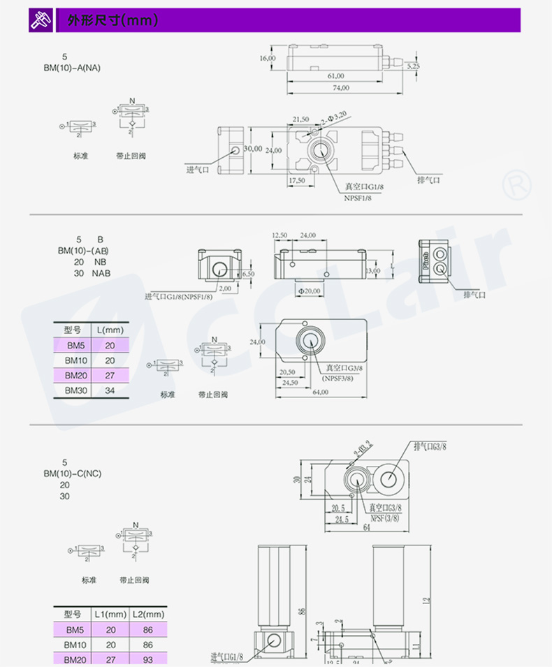迷你型多級(jí)真空發(fā)生器BX05-A,BX05-B,BX05-C,BX10-A,BX10-B,BX10-C ,BX20-B,BX20-C,BX30-B,BX30-C,