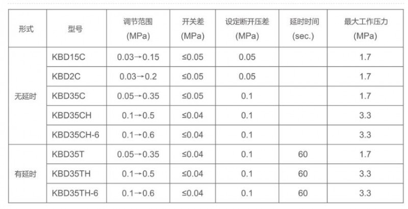 KBD-H型壓差控制器最高-工作圧力3.3MPa ,可用于螺桿式圧縮機(jī)的油圧保抉或油辻濾器堵塞保抄裝置。