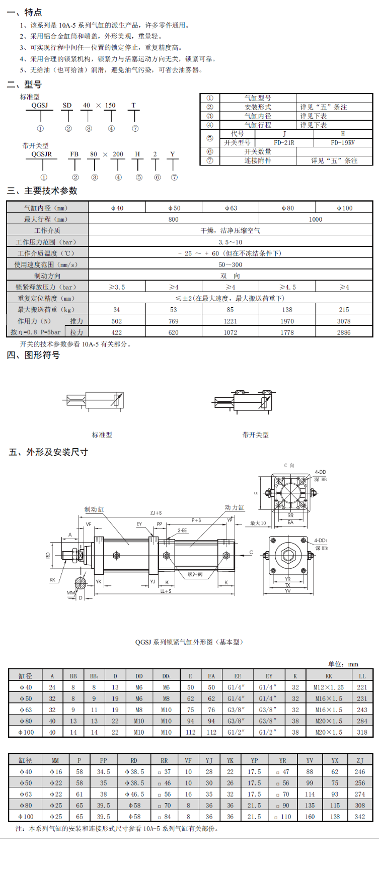 QGSJ無給油潤滑鎖緊氣缸