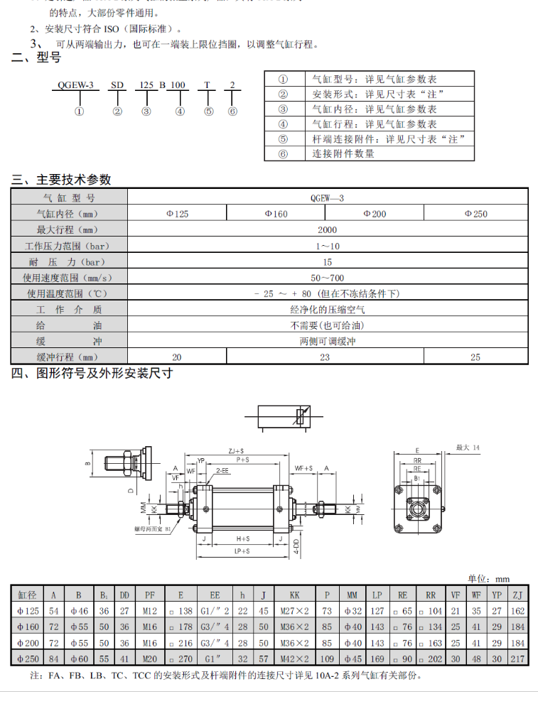 QGEW-3無給油潤滑雙活塞桿氣缸