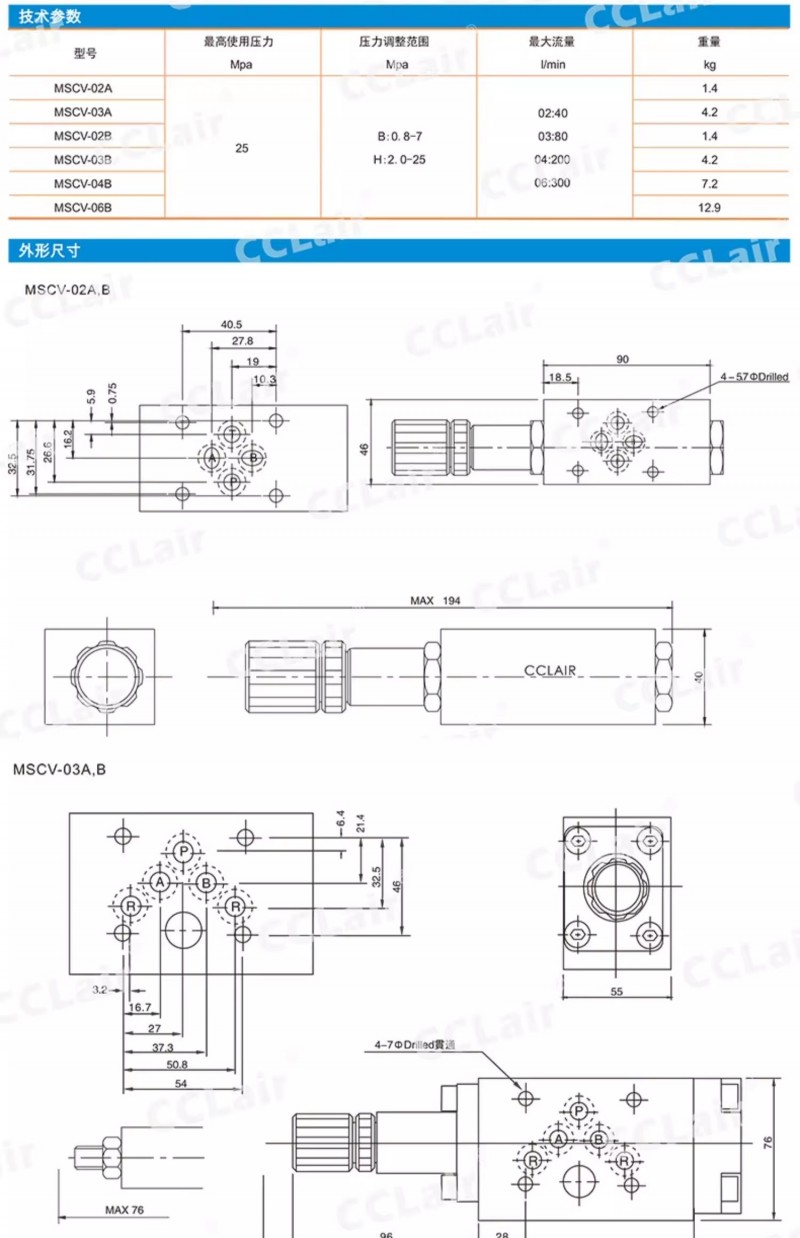 MSCV-02A-,MSCV-03A-,MSCV-02B-,MSCV-03B-,MSCV-02A疊加式順序閥
