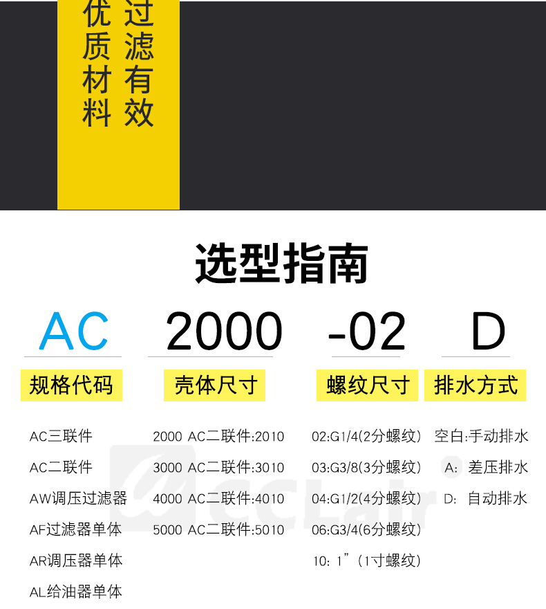 AC2010-02,AC2010-02D,AC3010-02,AC3010-02D,氣源處理二聯(lián)件 AC3010-03,AC3010-03D,AC4010-04,AC4010-04D, AC4010-06,AC4010-06D,AC5010-06,AC5010-06D, AC5010-10,AC5010-10D,白色款A(yù)C2010-02,白色款A(yù)C2010-02D, 白色款A(yù)C3010-02,白色款A(yù)C3010-02D,白色款A(yù)C3010-03,白色款A(yù)C3010-03D, 白色款A(yù)C4010-04,白色款A(yù)C4010-04D,白色款A(yù)C4010-06,白色款A(yù)C4010-06D, 白色款A(yù)C5010-06,白色款A(yù)C5010-06D,白色款A(yù)C5010-10,白色款A(yù)C5010-10D,