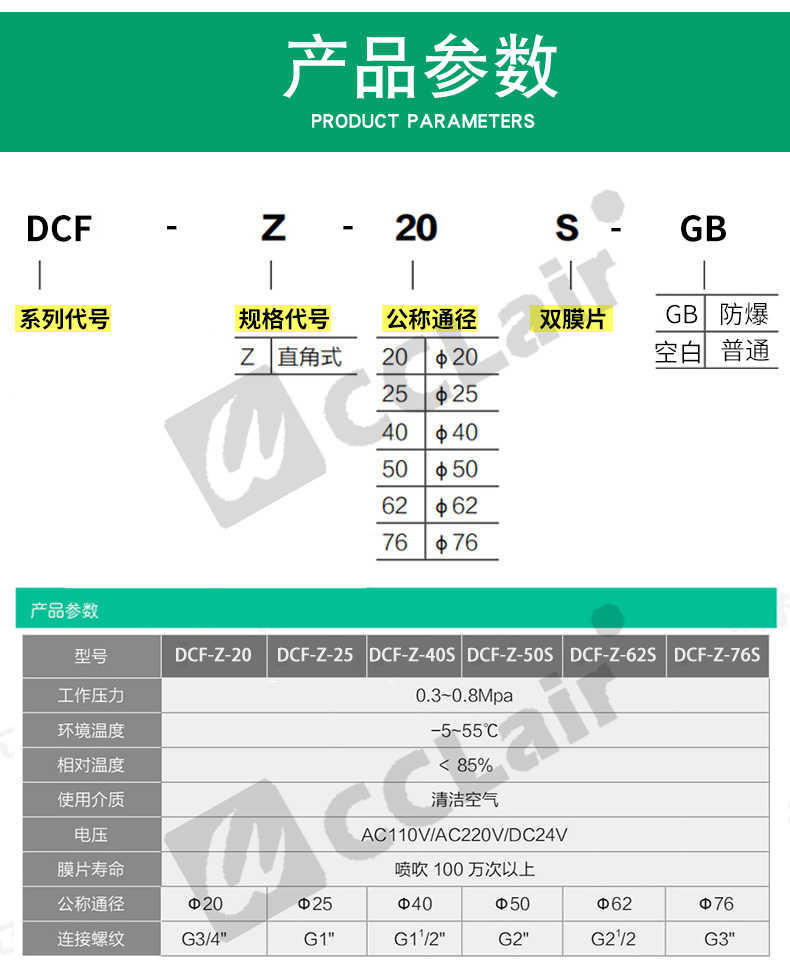 DCF-Y-25,DCF-Y-40S,DCF-Y-50S,淹沒式脈沖閥 DCF-Y-62S,DCF-Y-76S,DCF-Y-102S,