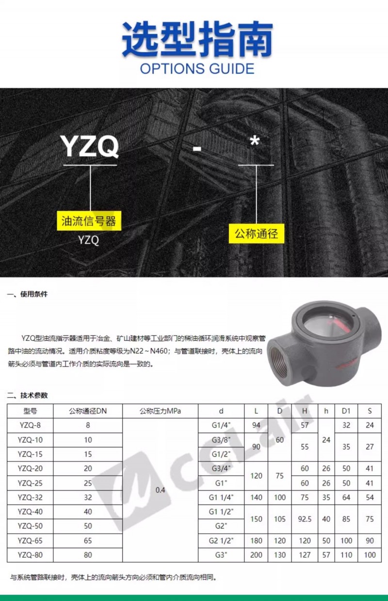 YZQ-8 鑄鐵(G1/4),YZQ-40 鑄鐵(G11/2),觀油器/YZQ指示器