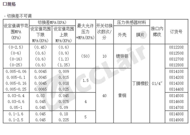 0812207,0814507,0812507,0814607,壓力控制器 D500/7DK切換差不可調 0812707,0814707,0812807,0814807, 0814107,0814907,0814207,0814307,0814407,