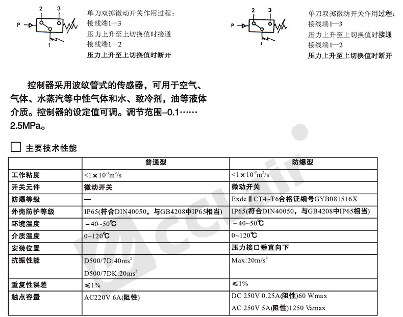 0810100,0811500,0810200,0811600,壓力控制器 普通 D502/7D切換差不可調(diào)