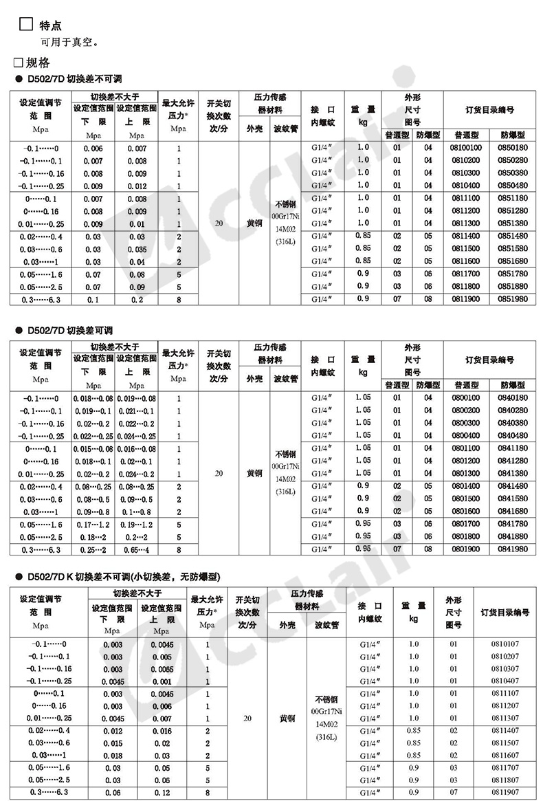 0840180,0841580,0840280,0841680,壓力控制器 防爆 D502/7D切換差可調(diào) 0840380,0841780,0840480,0841880, 0841180,0841280,0841380,0841480,