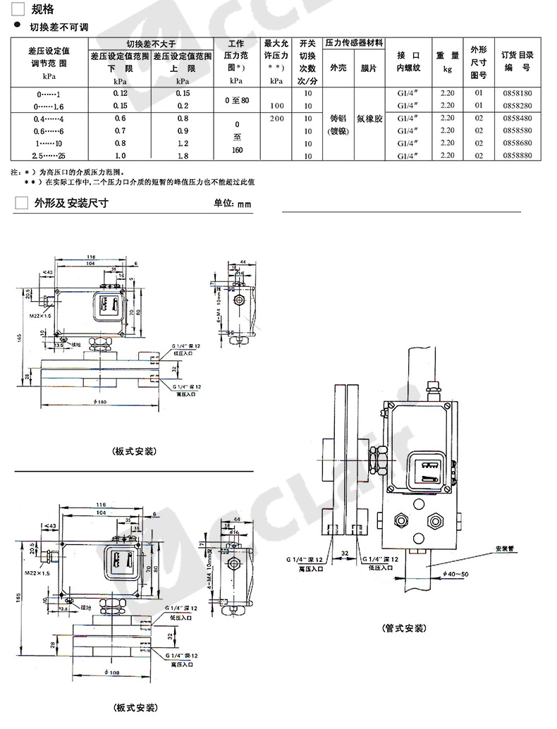 0859181,0859581,0859281,0859681,0859381,0859781,0859481,0859885,壓差控制器 防爆 D530/7DD切換差不可調(diào)