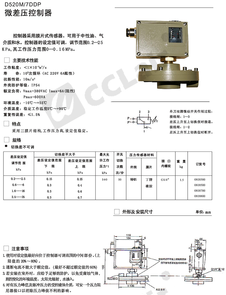 0849180,0849580,0849280,0849680,0849380,0849780,0849480,壓差開關 防爆 D520/7DD切換差可調