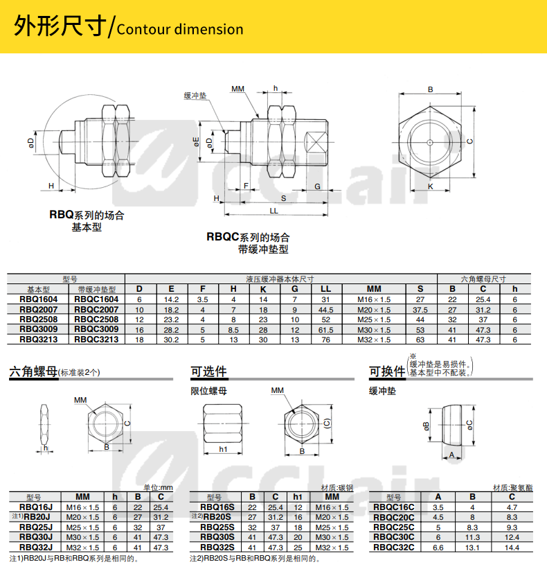 RBQ1604,RBQC1604,RBQ2007,RBQC2007,RBQ2508,RBQC2508,油壓緩沖器,短款型 RBQ3009,RBQC3009,RBQ3213,RBQC3213,