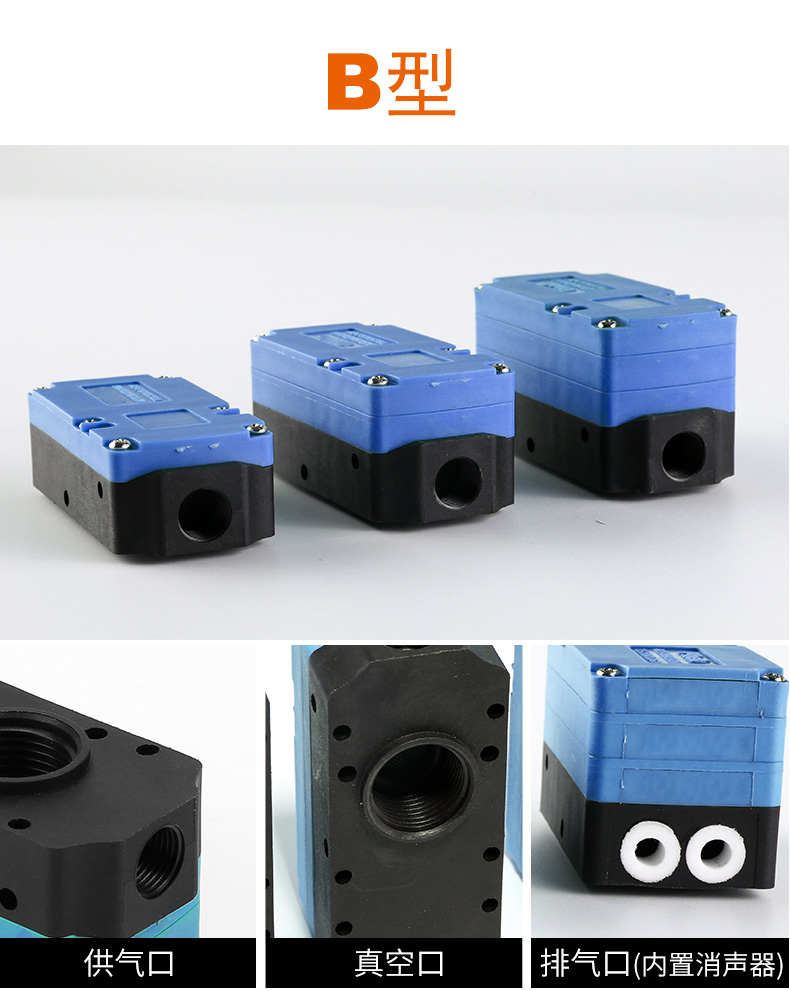 多級高真空型發(fā)生器的工作原理是利用噴管高速噴射壓縮空氣,?在噴管出口形成射流,?產(chǎn)生卷吸流動(dòng)。?這種工作原理使得噴管出口周圍的空氣不斷地被抽吸走,?從而使吸附腔內(nèi)的壓力降至大氣壓以下,?形成一定真空度。