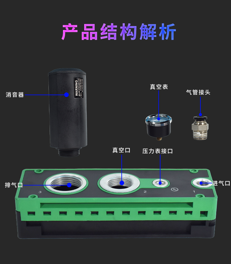 真空吸盤發(fā)生器的工作原理主要基于文氏管(?文丘里管)?的工作原理。?當(dāng)壓縮空氣從供應(yīng)口進(jìn)入真空發(fā)生器后,?通過內(nèi)部狹窄的噴嘴時(shí)產(chǎn)生加速效應(yīng),?使得空氣以更快的速度流經(jīng)擴(kuò)散室。?在這個(gè)過程中,?壓縮空氣帶動(dòng)擴(kuò)散室內(nèi)的空氣一同快速流出,?從而在擴(kuò)散室內(nèi)產(chǎn)生瞬時(shí)真空效應(yīng)。?