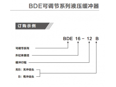 全系列分為小型可調(diào)節(jié)型和中大型可調(diào)節(jié)型兩大類,其中,BDE36M以下的型號(hào)為小型可調(diào)節(jié)型,外缸體為全螺牙外螺紋;BDE42以上的型號(hào)為中大型可調(diào)節(jié)型,外缸體兩端有外螺紋,該類型緩沖器兩端的連接件,可選擇U型夾的安裝方式。