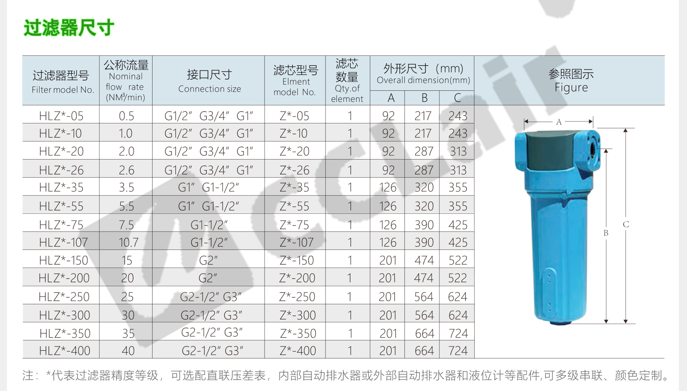HLZQ-05,HLZQ-10,HLZQ-20,HLZQ-26,HLZQ-35 G1,HLZQ-35 G11/2,HLZQ-55 G1,HLZQ-55 G11/2,HLZQ-75,HLZQ-95,HLZQ-150,HLZQ-200,HLZQ-250,HLZQ-300,HLZQ-350,HLZQ-400,HLZC-05,HLZC-10,HLZC-20,HLZC-26,HLZC-35 G1,HLZC-35 G11/2,HLZC-55 G1,HLZC-55 G11/2過濾器