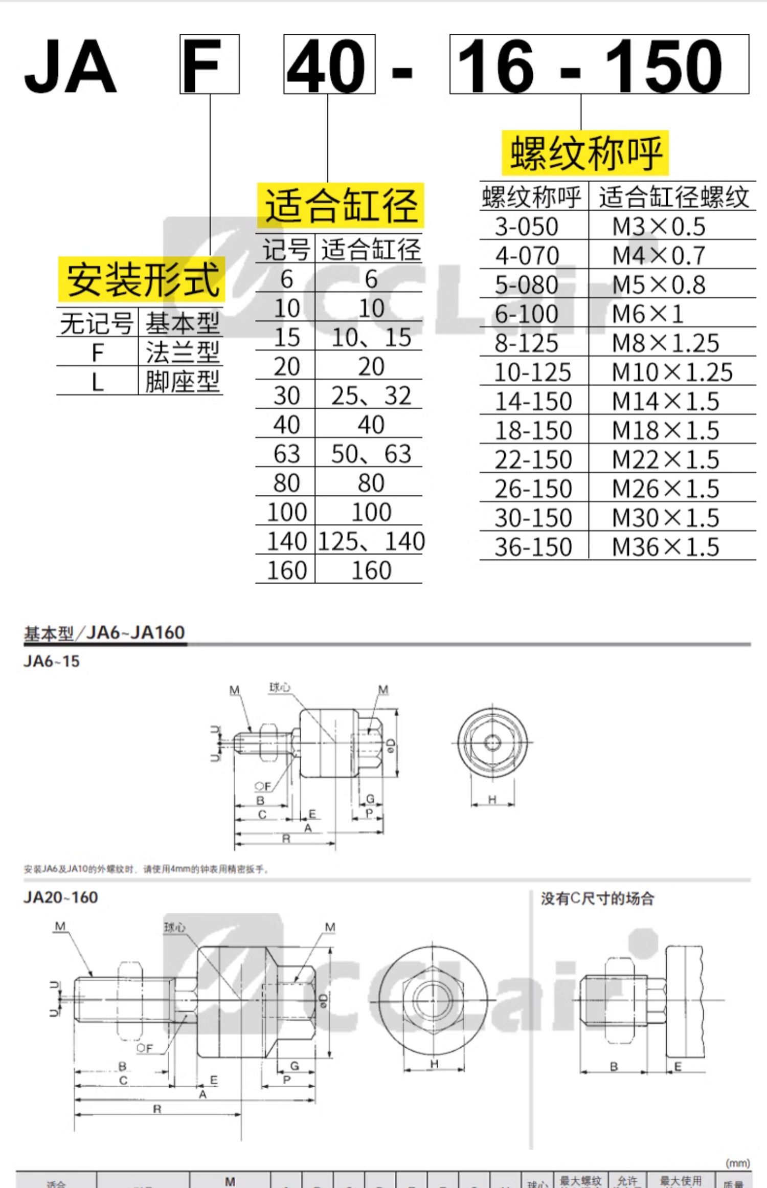 JAH40-16-150(M16*1.5),JAH50-20-150(M20*1.5),JAH63-24-150(M24*1.5),JAH63-24-200(M24*2),JAH80-30-150(M30*1.5),JAH80-30-200(M30*2),JAH100-39-150(M39*1.5),JAH100-39-200(M39*2),JAH100-42-300(M42*3),JAH100-42-200(M42*2),JAH100-48-150(M48*1.5)浮動(dòng)接頭