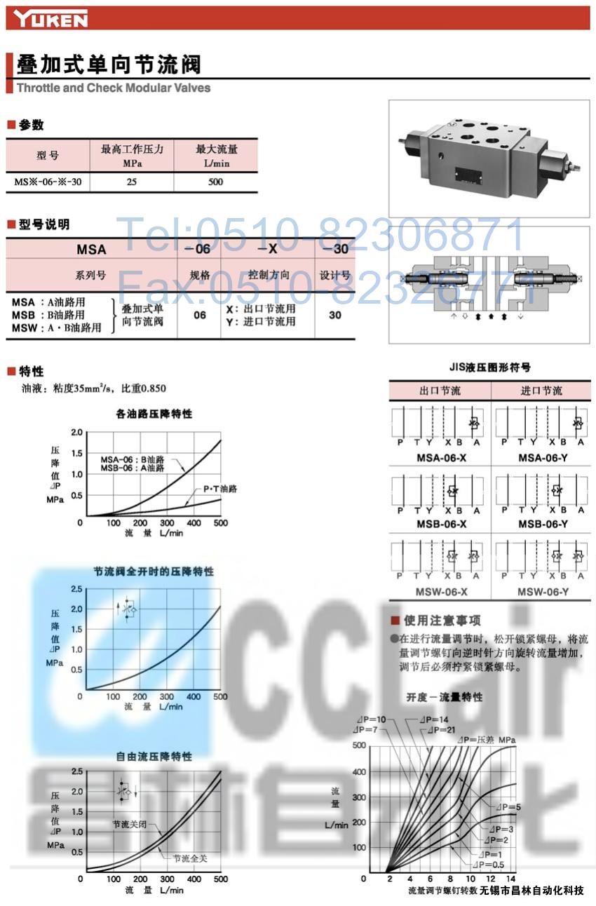 MSA-06-X-30,MSA-06-Y-30,MSB-06-X-30,疊加式單向節(jié)流閥,榆次油研疊加式單向節(jié)流閥,YUKEN疊加式單向節(jié)流閥