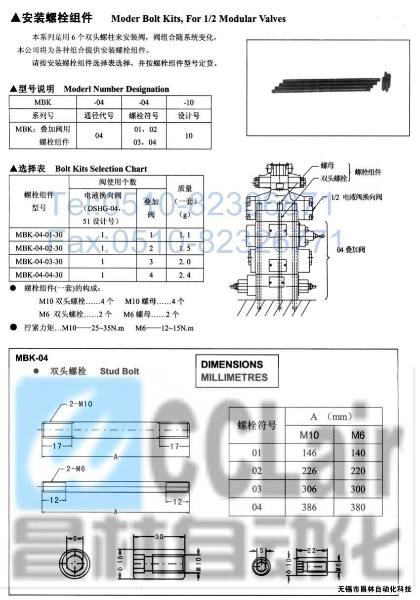 MBK-04-01-30,MBK-04-02-30,MBK-04-03-30,安裝螺栓組件,榆次油研安裝螺栓組件,YUKEN安裝螺栓組件