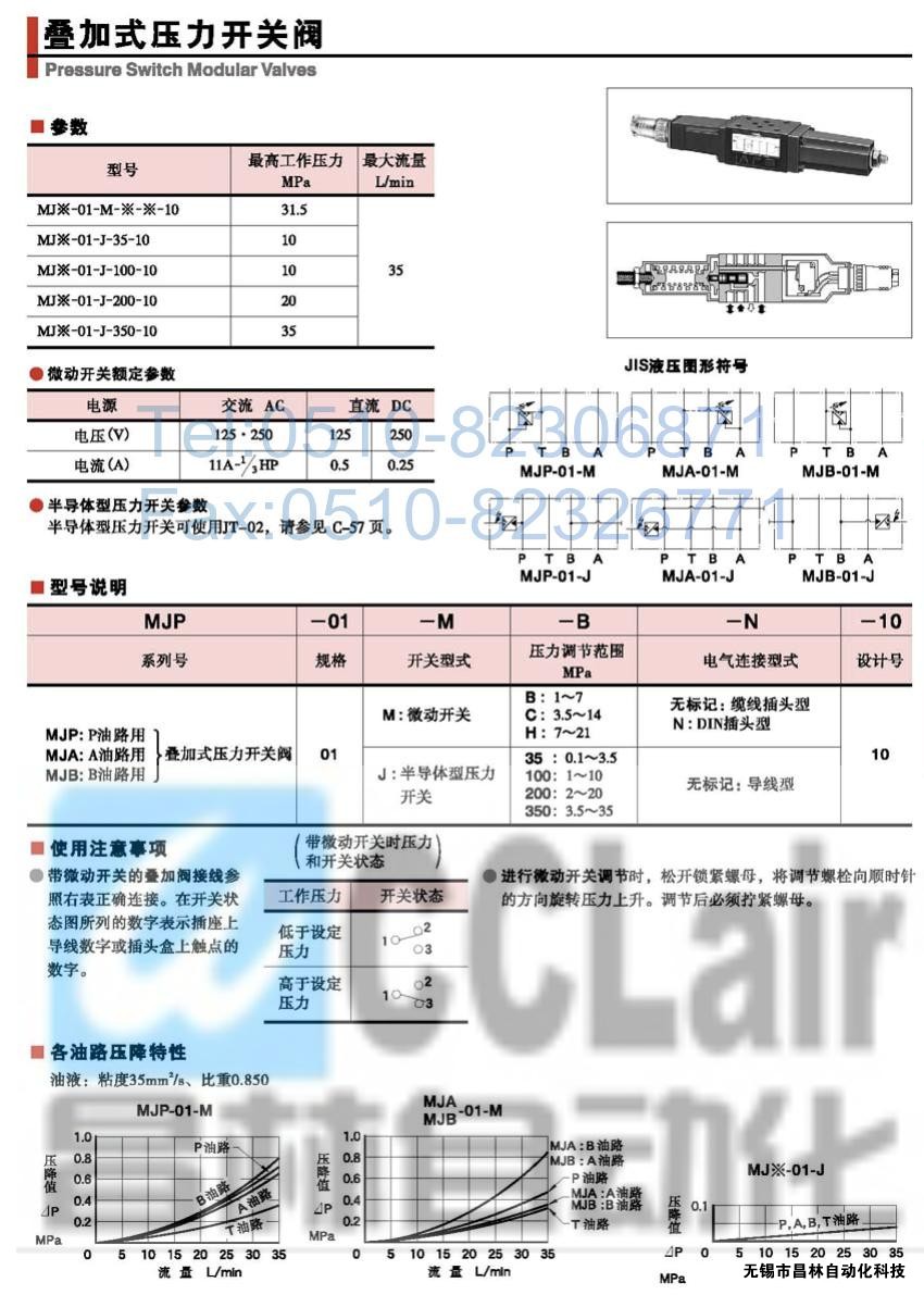 MJP-01-M-B-N-10,MJP-01-M-C-N-10,疊加式壓力開關閥,榆次油研疊加式壓力開關閥,YUKEN疊加式壓力開關閥
