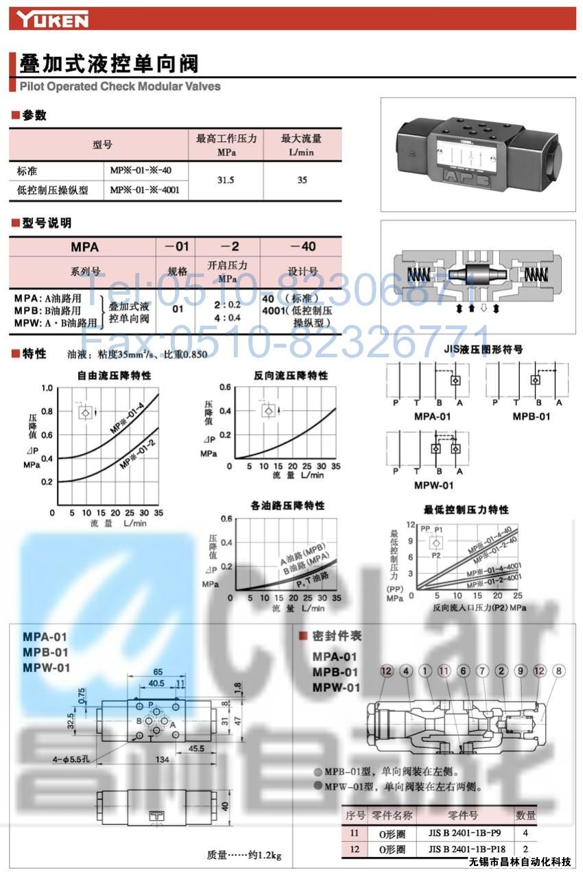 MPB-01-2-40,MPB-01-2-4001,MPB-01-4-40,疊加式液控單向閥,榆次油研疊加式液控單向閥,YUKEN疊加式液控單向閥