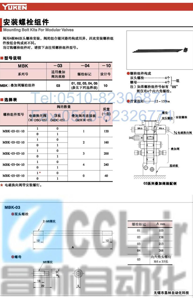 MBK-03-04-10,MBK-03-01-10,安裝螺栓組件,榆次油研安裝螺栓組件,YUKEN安裝螺栓組件