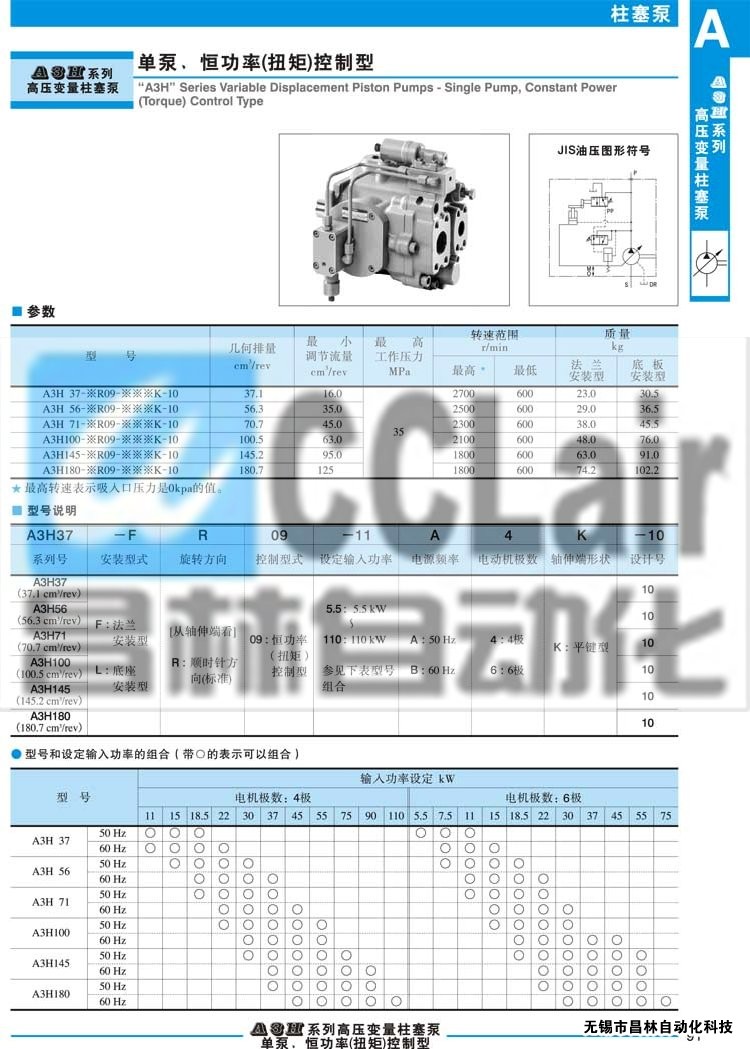 A3H145-FR09-55B6K-10,A3H145-LR09-55B6K-10,A3H180-FR09-37A4K-10,高壓變量柱塞泵