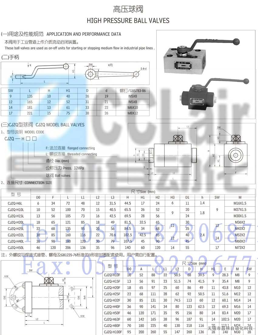 CJZQ-H6L,CJZQ-H10L,CJZQ-H15L,CJZQ-H20L,CJZQ-H25L,CJZQ-H32L,CJZQ-H40L,高壓球閥 |