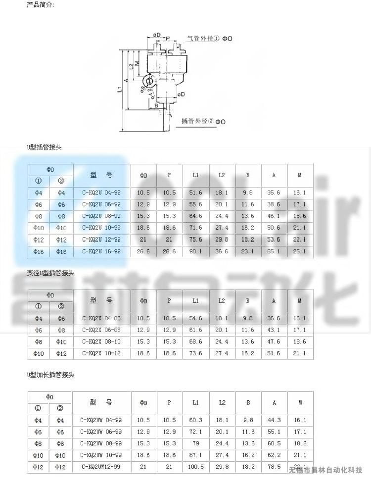 C-KQ2UW10-99, C-KQ2UW12-99, U型插桿接管,