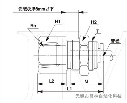 | MODEL | 管徑 | Rc | T | H1 | H2 | L1 | L2 | 安裝孔 | M | CT(mm2) | 重量 |