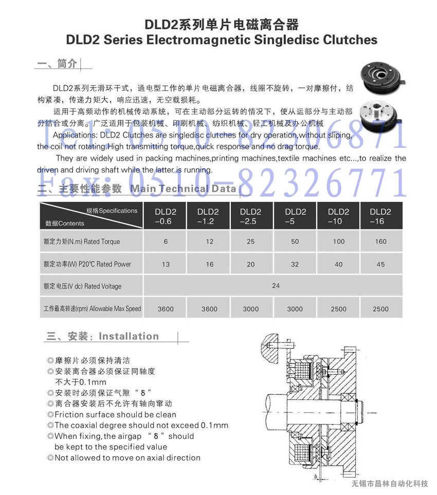 DLD2-0.6,DLD2-1.2,DLD2-2.5單片電磁離合器