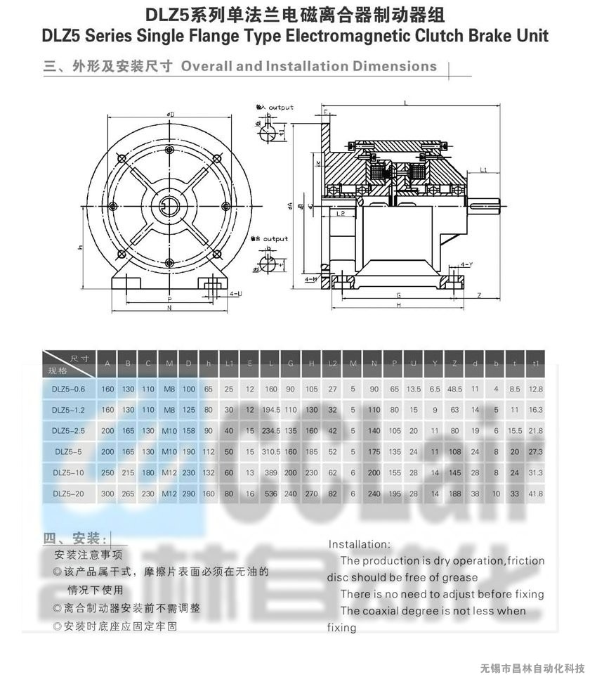 DLZ5-0.6,DLZ5-1.2,DLZ5-2.5,DLZ5-5,DLZ5-10,DLZ5-20單法蘭電磁離合器制動(dòng)器組
