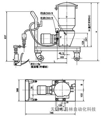 (1)潤(rùn)滑泵的外形尺寸 (2)帶小車(chē)潤(rùn)滑裝置外形尺寸