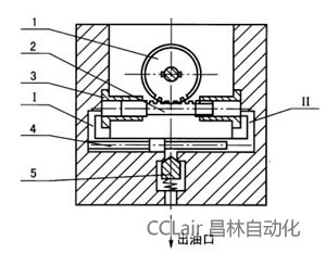 | 手動潤滑泵是人工扳動手柄,通過齒輪1帶動齒輪活塞2往復(fù)運動實現(xiàn)給脂的。當(dāng)活塞處于圖示右端極限位置時,左端油腔容積增大形成真空,于是貯油筒內(nèi)的潤滑劑在彈簧和活塞片的作用下從吸油口吸入活塞左端油腔內(nèi)。當(dāng)活塞向左移動時,被吸入的潤滑劑壓入孔道Ⅰ并把滑閥4推向右端極限位置,頂開單向閥5從出油口排出,此時,活塞右端油腔容積逐漸增大,潤滑劑被吸入,在活塞返回向右移動時,充滿潤滑劑的油腔又逐漸變小,擠壓潤滑劑進入孔道Ⅱ,推動滑閥4向左移動,頂開單向閥5從出油口排出,泵底部配裝換向閥,扳動換向手柄至左右二極限位置可實現(xiàn)雙線供劑。 | ![]() |
