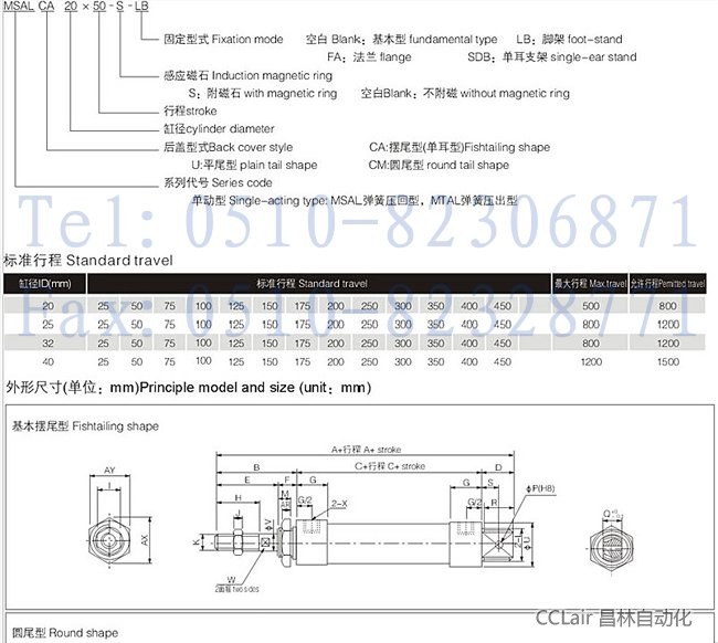 MSAL-20-350,MSAL-20-400,MSAL-20-450,MSAL-20-500,MSAL-20-800,鋁合金迷你型氣缸