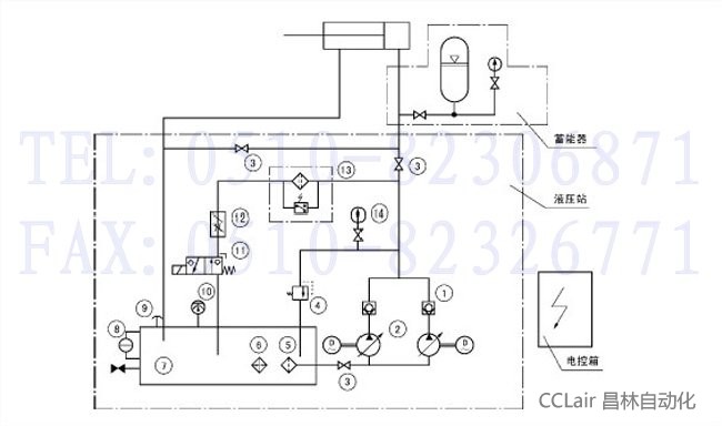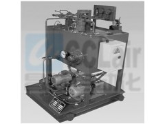 系統(tǒng)裝有兩套可調(diào)流量微量計(jì)量泵,正常工作時(shí),油泵一臺(tái)工作,一臺(tái)備用,在特殊需要時(shí)亦可允許同時(shí)起動(dòng)兩泵,系統(tǒng)最高壓力為10MPa,最低壓力為4MPa,油缸上行速度由變量微量油泵來調(diào)定,油缸下行時(shí)的速度由節(jié)流閥來調(diào)定,油溫是由裝在油箱上的雙金屬電接點(diǎn)溫度來控制電加熱器的關(guān)閉,油站系統(tǒng)有一臺(tái)精度