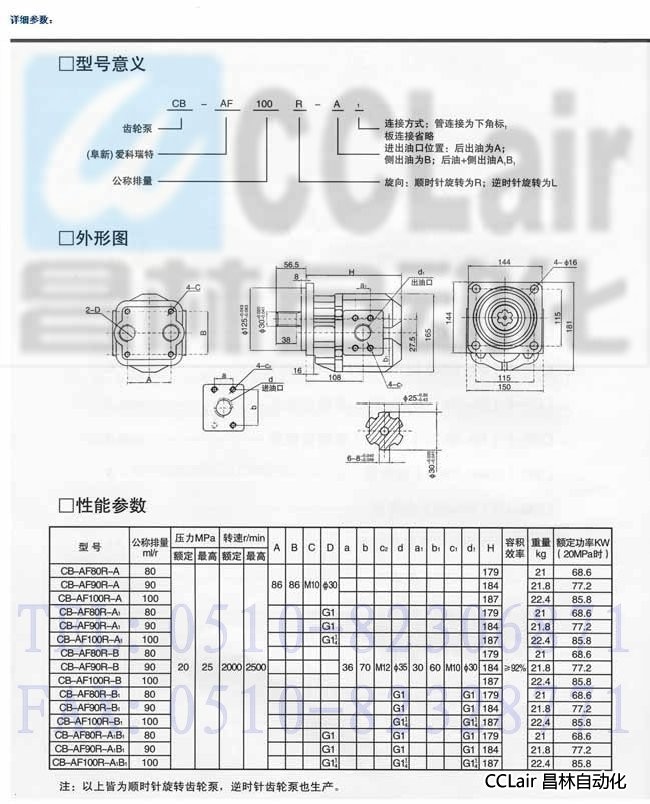 CB-AF90R-A1,CB-AF100R-A1,CB-AF80R-B,CB-AF90R-B,齒輪泵