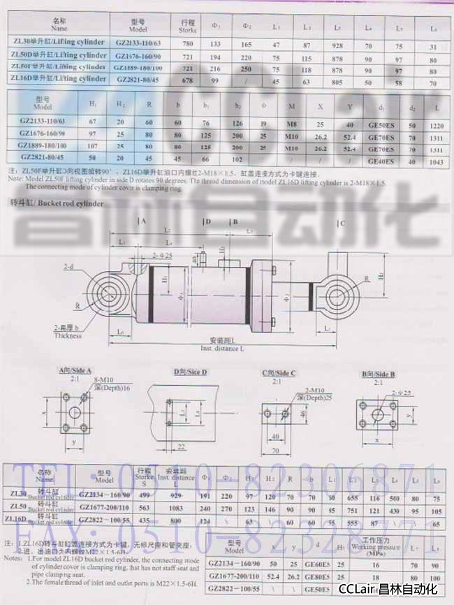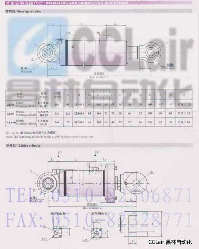 GZ1677-200/110,GZ2822-100/55,GZ2133-110/63,裝載機液壓缸