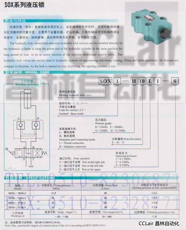 SOX2-G15L1-Y,SOX2-G15L1-Z,SOX2-G15L1-S,SOX2-G15L2-Y,液壓鎖,