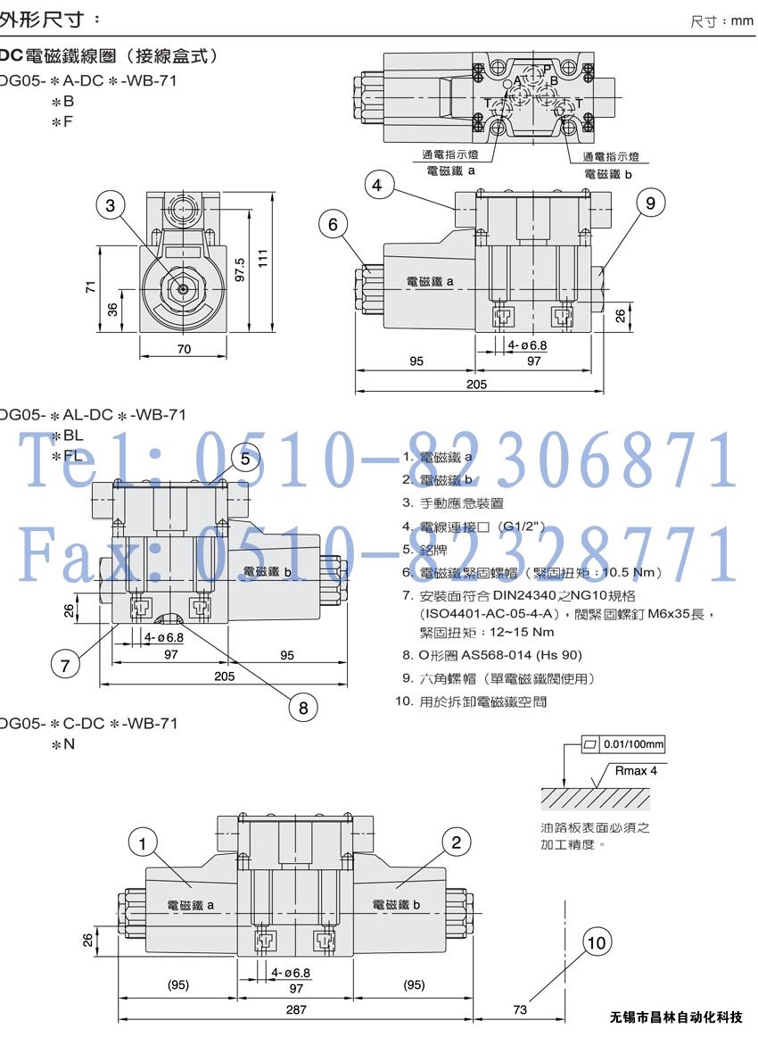 DG05-6N,DG05-7N,DG05-8N,DG05-11N,DG05-22N,DG05-31N,DG05-33N,濕式電磁鐵操作換向閥