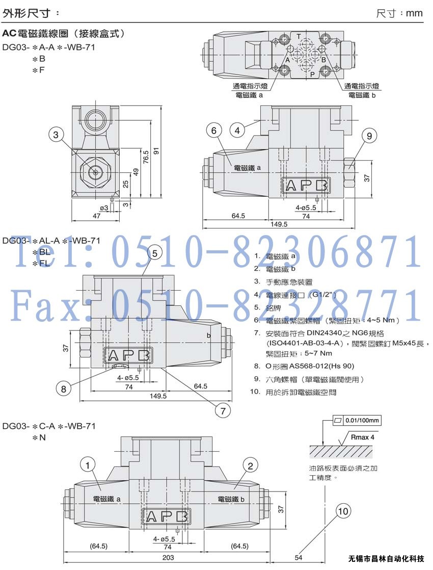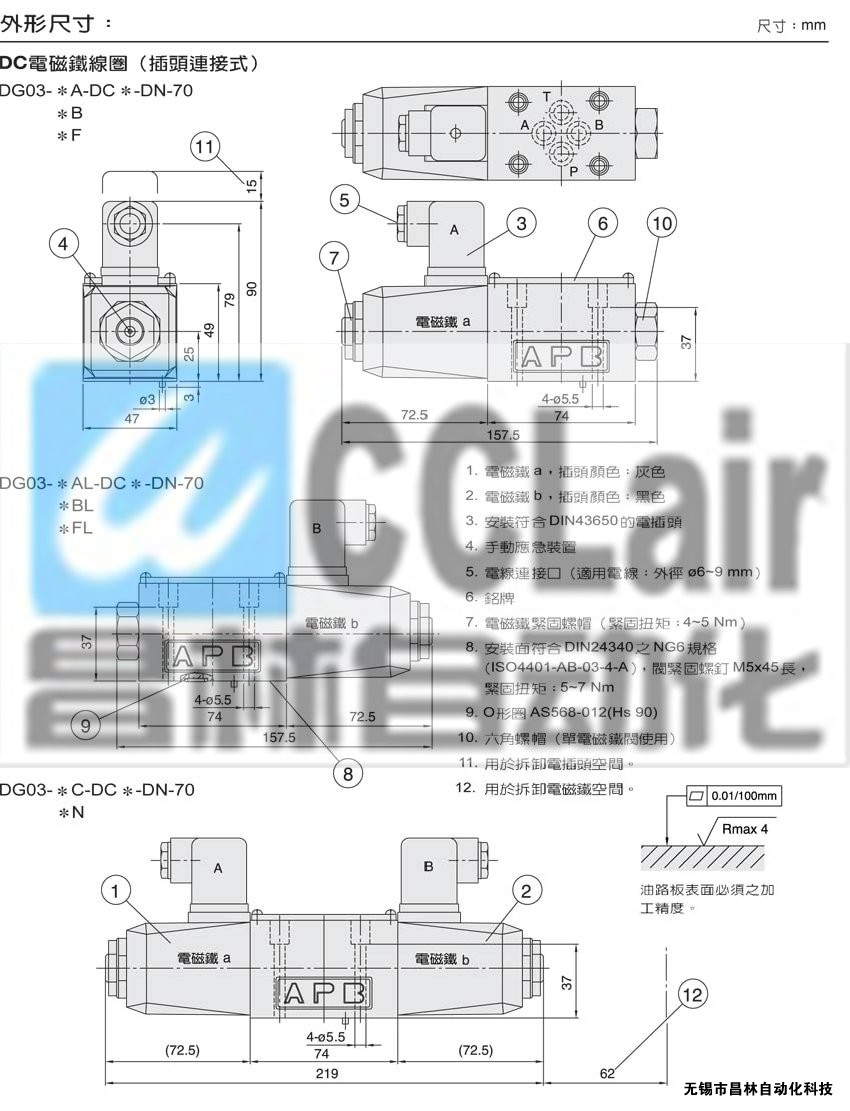 DG03-31BL,DG03-33BL,DG03-0C,DG03-1C,DG03-2C,DG03-3C,DG03-5C,DG03-6C,濕式電磁鐵操作換向閥