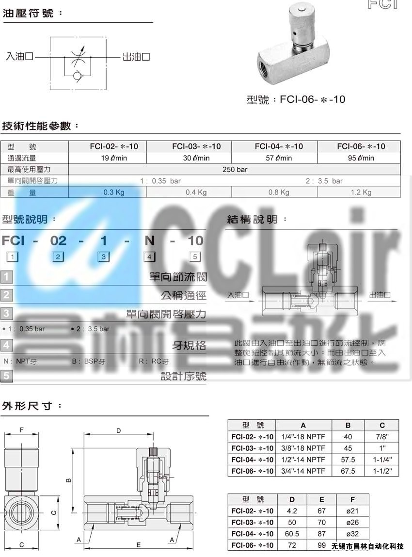 FC1-02-1-N-10,FC1-03-2-B-10,FCI-02-2-R-10,FCI-03-2-R-10,FCI-04-2-R-10,單向節(jié)流閥